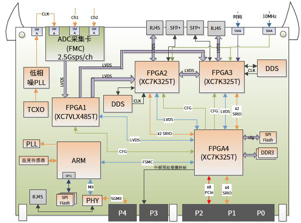 l 板载1片XC7VLX485T和3片XC7K325T,通过LVDS和GTX互联