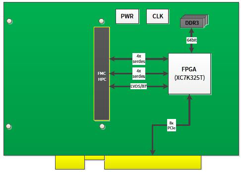 l X8 pcie接口,到FMC连接器有两组4x serdes接口,以及42对LVDS信号