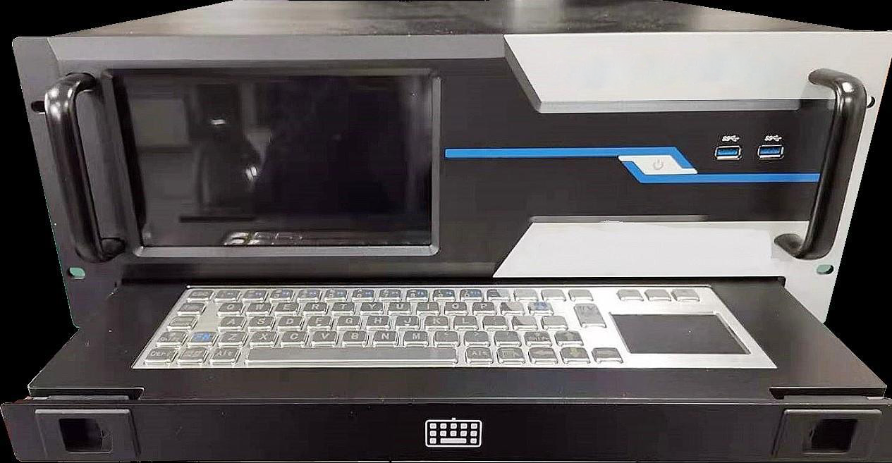 1、采用基于VPX架构的工控机箱,19英寸机箱,高度为4U,集成鼠标键盘、显示屏;
